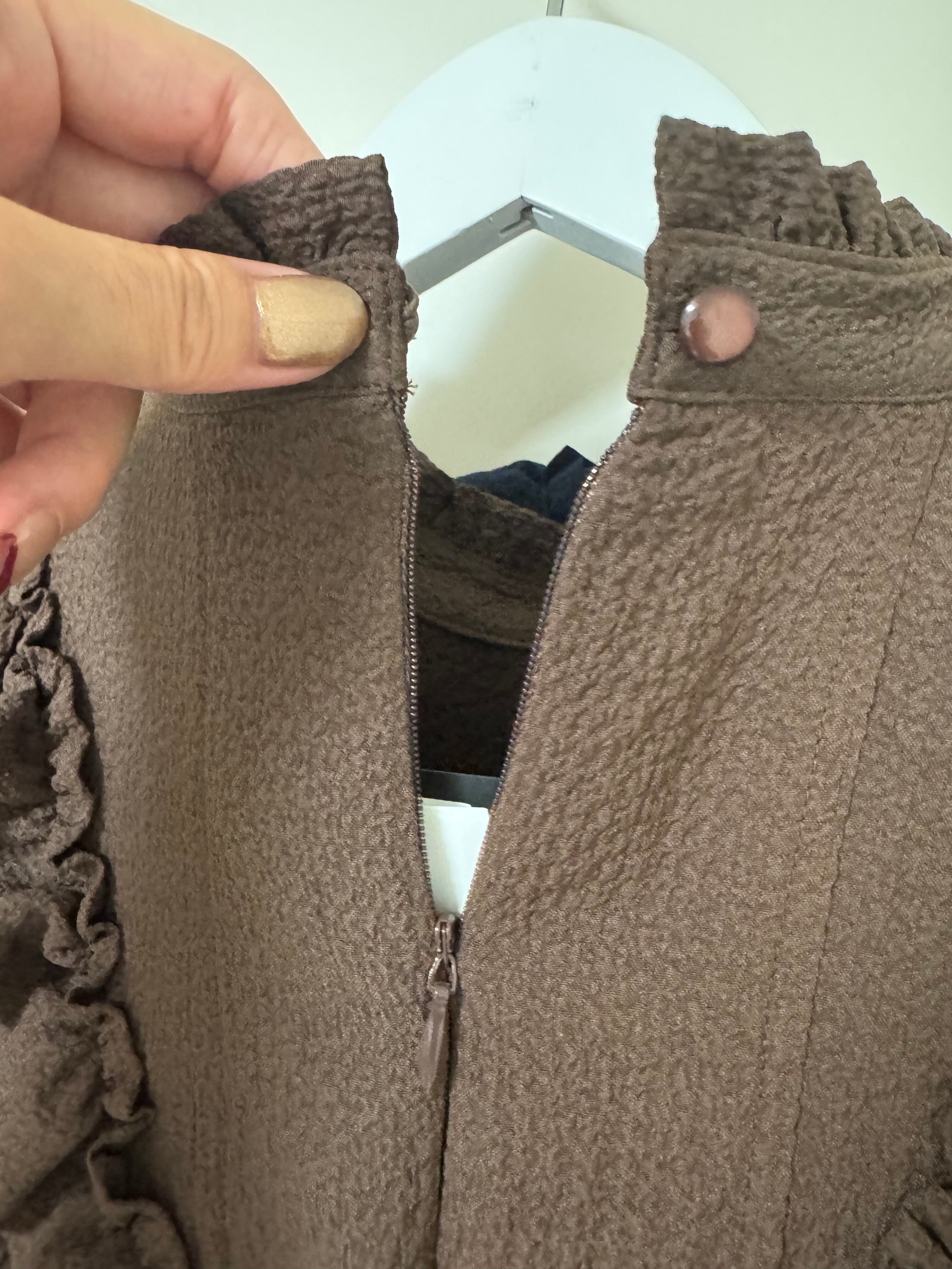 このブラウスは、丈が63cmでちょうど良いバランスを保ちつつ、合わせるボトムス次第でカジュアルにもフォーマルにもコーディネート可能です。シンプルながらも存在感のあるフリルデザインが、スタイルに華やかさをプラスします。デイリーコーデを一段と洗練された印象に仕上げてくれるこのアイテムで、自分らしいスタイルを楽しんでみませんか?